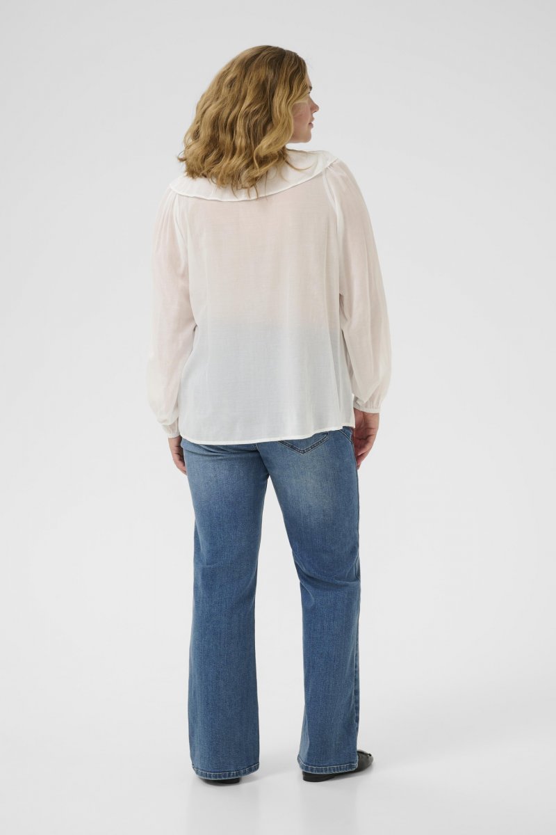 BluseTilgjengelig i størrelser 42–54Fra merket Kaffe CurveMateriale: 50 % bomull, 50 % viskoseVanlig passformFargen er hvitKlikk her for å se størrelsesguiden