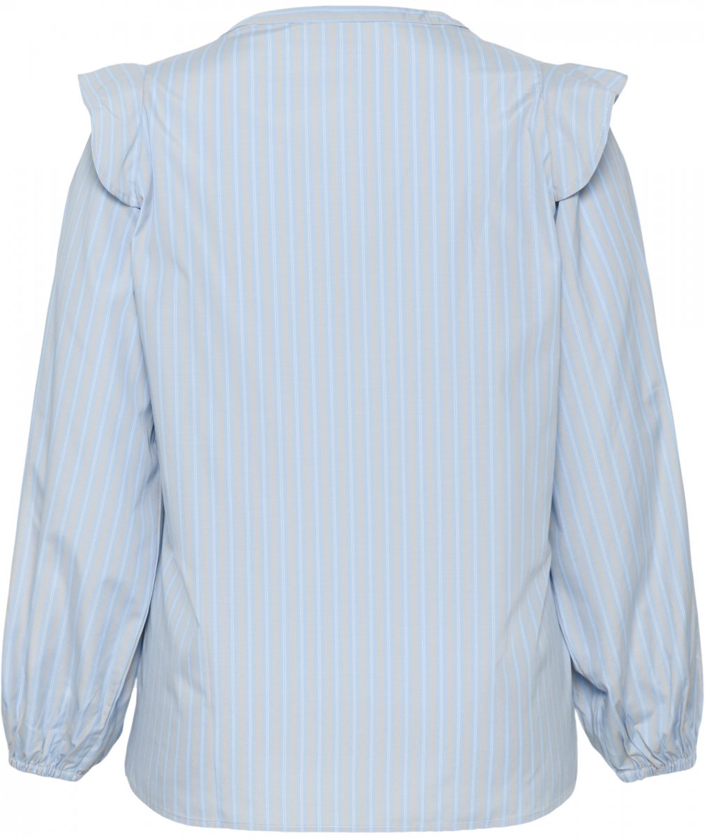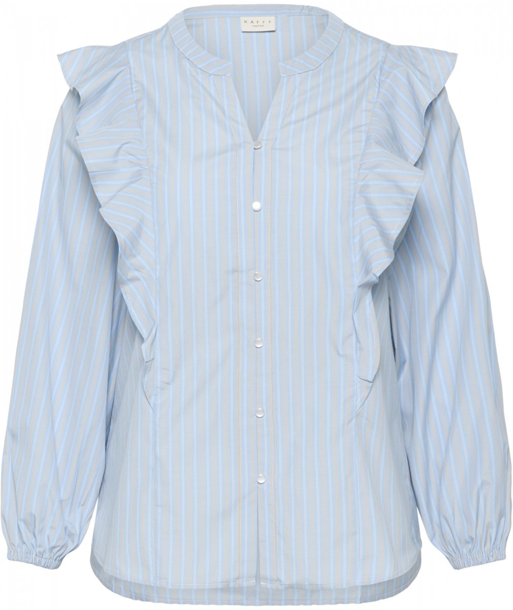 Langermet skjorteTilgjengelig i størrelser 42–54Fra merket Kaffe CurveLaget av 65 % polyester og 35 % bomullVanlig passformFargen er blåKlikk her for å se størrelsesguiden