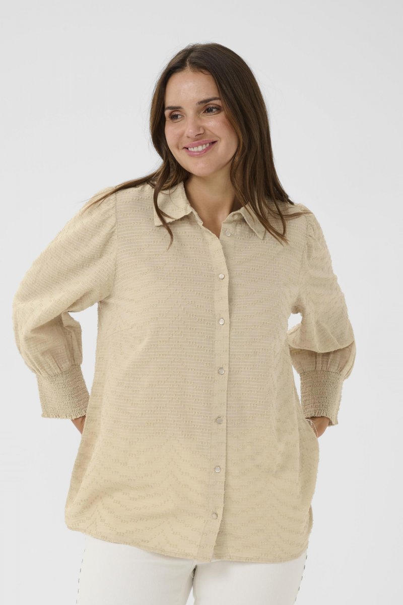 Langermet skjorteTilgjengelig i størrelser 42–54Fra merket Kaffe CurveLaget av 100% bomullVanlig passformFargen er beigeKlikk her for å se størrelsesguiden