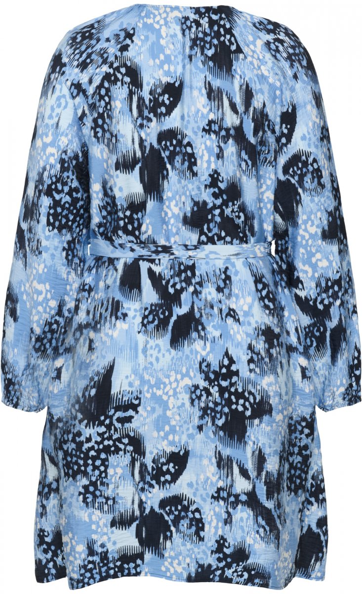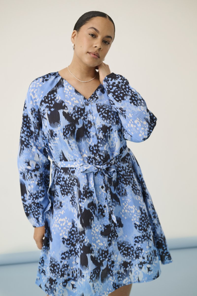 KjoleTilgjengelig i størrelser 42–54Fra merket Kaffe CurveMateriale: 85 % viskose, 15 % nylonMidiFargen er blåKlikk her for å se størrelsesguiden