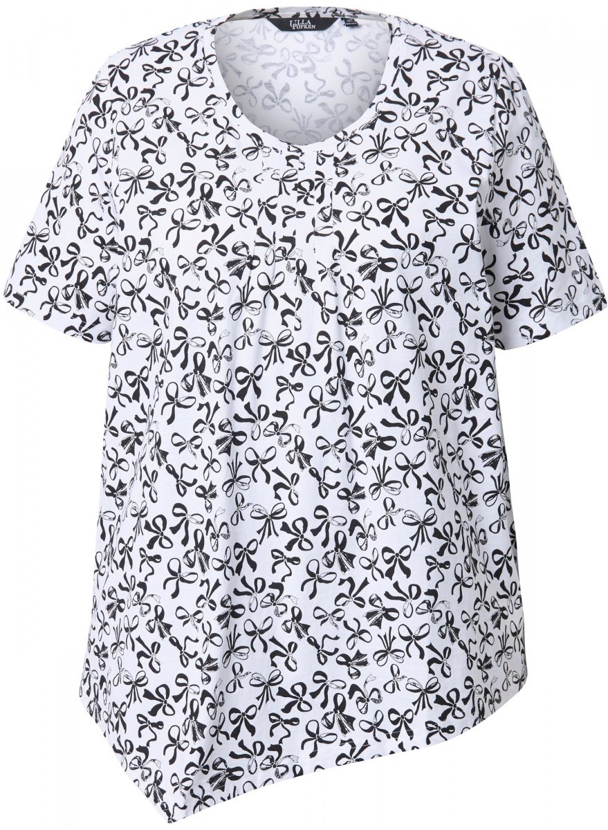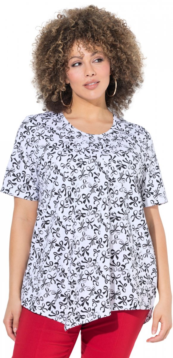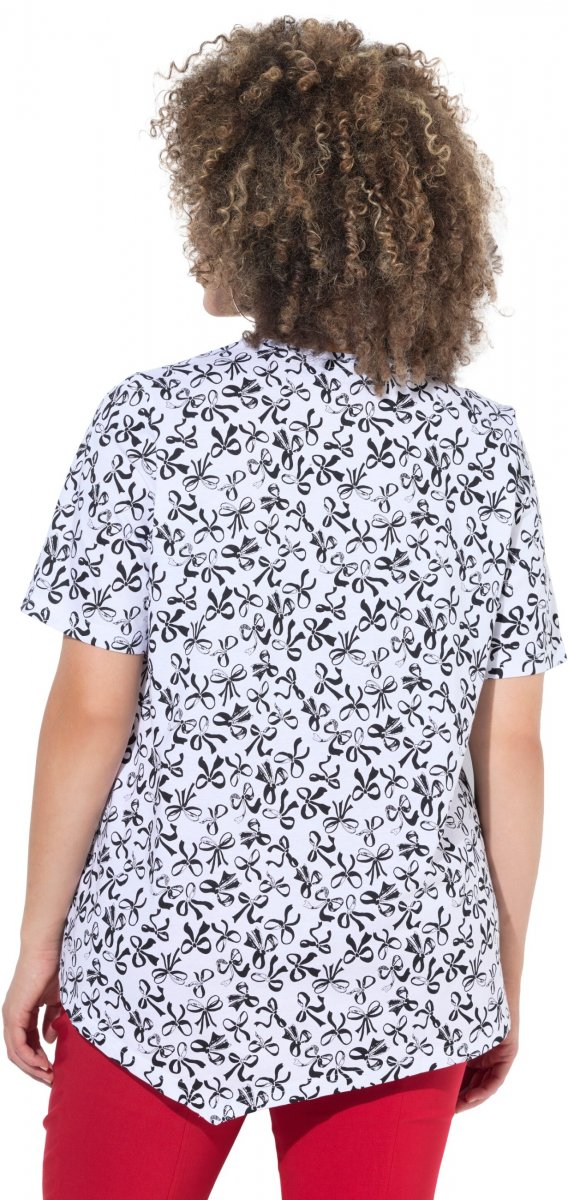 Størrelsesguide - Ulla Popken Bow Print Short Sleeve Pointed Hem Tee Snow White