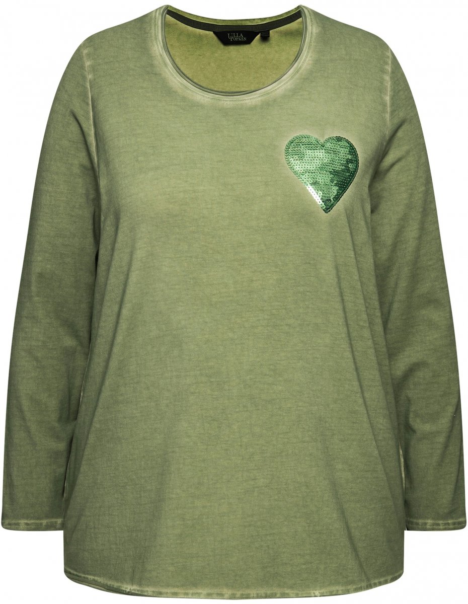 Ulla Popken Cold Dyed Sequined Heart Long Sleeve Tee Sage Green
