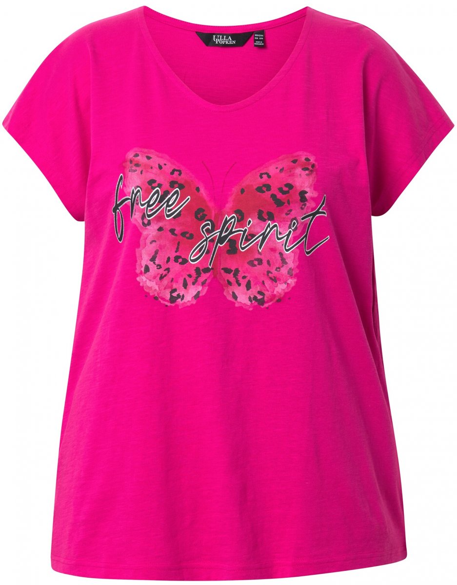 Størrelsesguide - Ulla Popken Free Spirit Butterfly Cap Sleeve Graphic Tee Magenta Pink