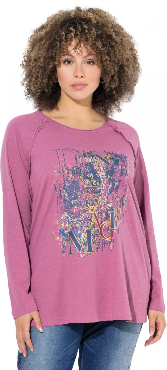 Ulla Popken Inverted Seam Long Sleeve Graphic Tee Dark Rose