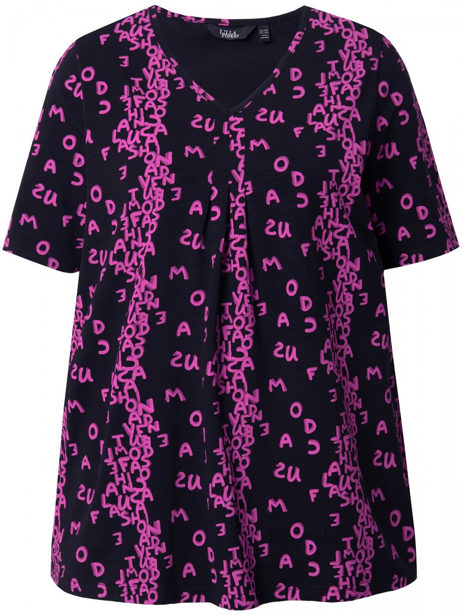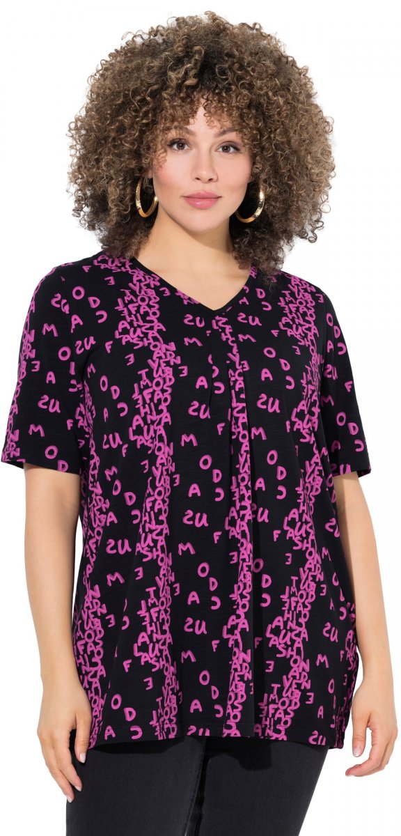 Ulla Popken Letter Print Short Sleeve Tee Magnolia Red