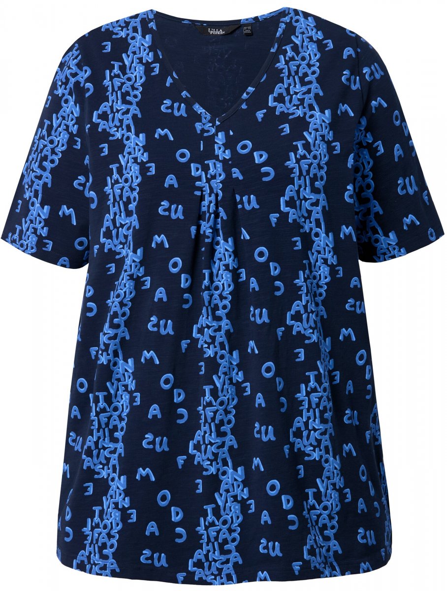 Ulla Popken Letter Print Short Sleeve Tee Navy