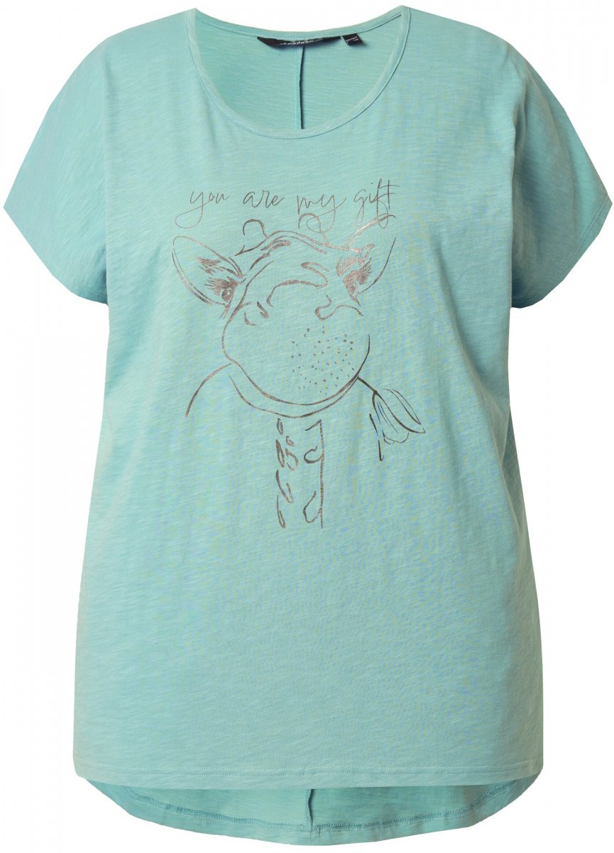 Ulla Popken Metallic Animal Cap Sleeve Graphic Tee Light Green