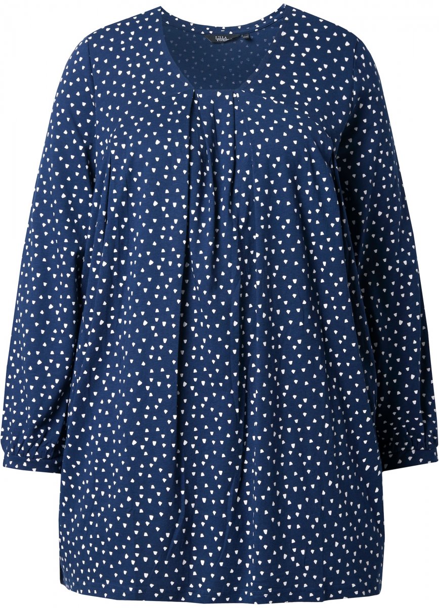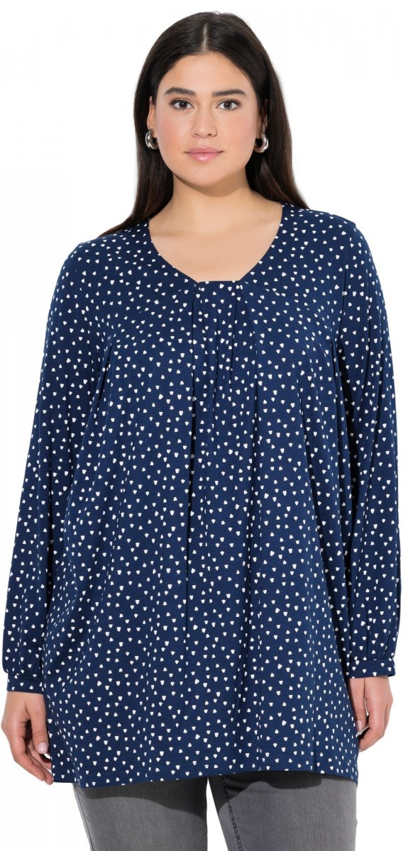 Ulla Popken Pleated Confetti Print Long Sleeve Tee Ink Blue