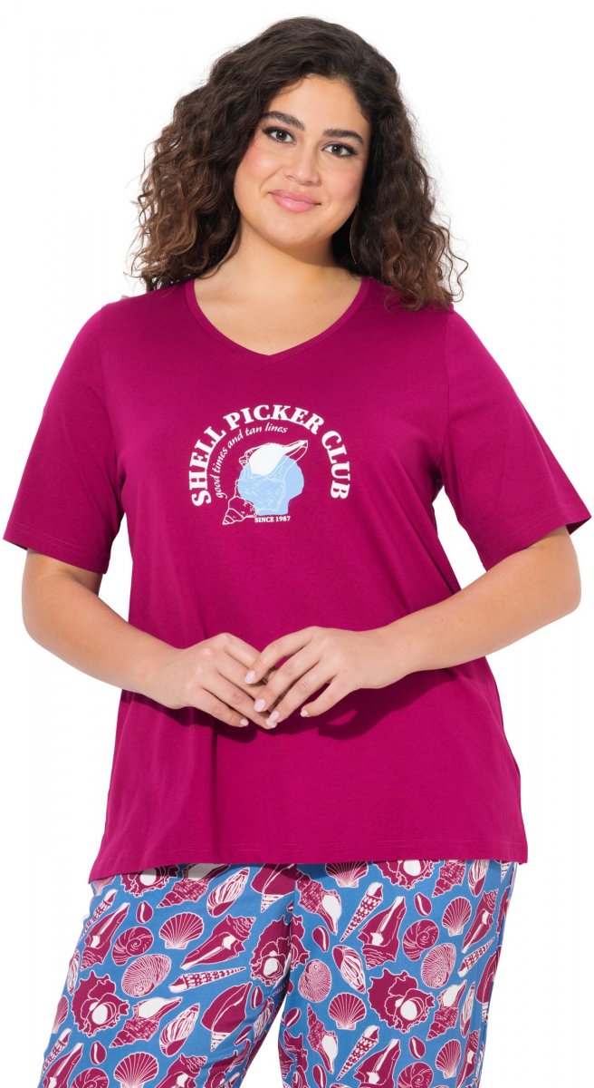 Størrelsesguide - Ulla Popken Shell Picker Club Short Sleeve Graphic Tee Magnolia Red