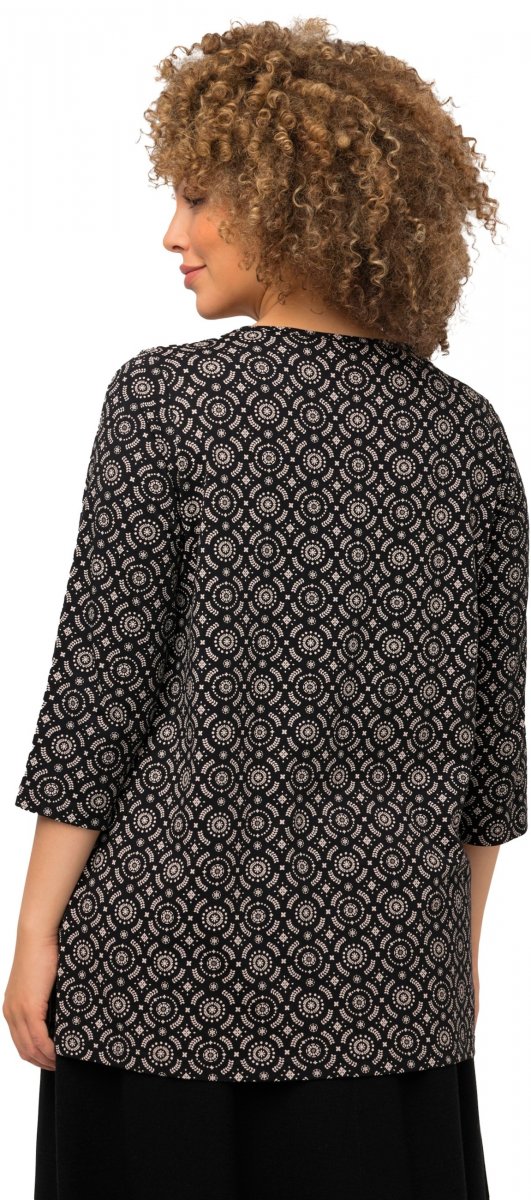 Ulla Popken 3/4 Sleeve Geometric Graphic Tee Black
