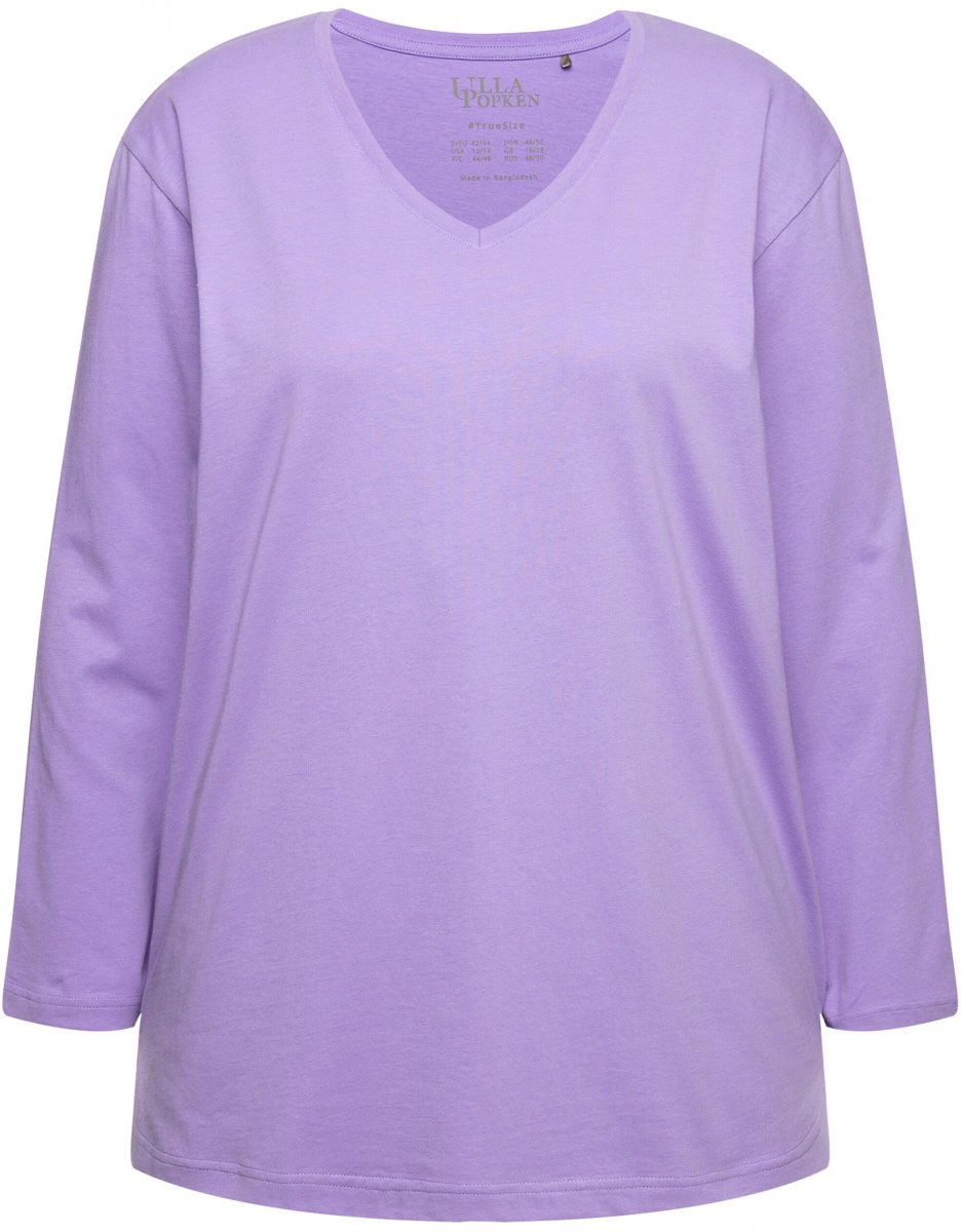 Størrelsesguide - Ulla Popken Back To Basics V-Neck Relaxed Fit Cotton Tee Pale Lilac