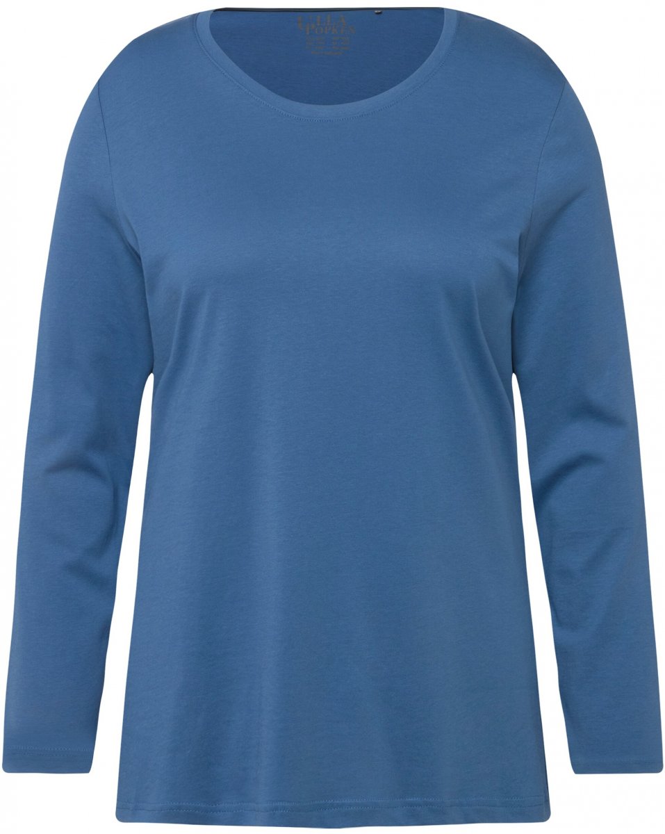Ulla Popken Basic Round Neck Long Sleeve Slim Fit Cotton Tee Blue Denim