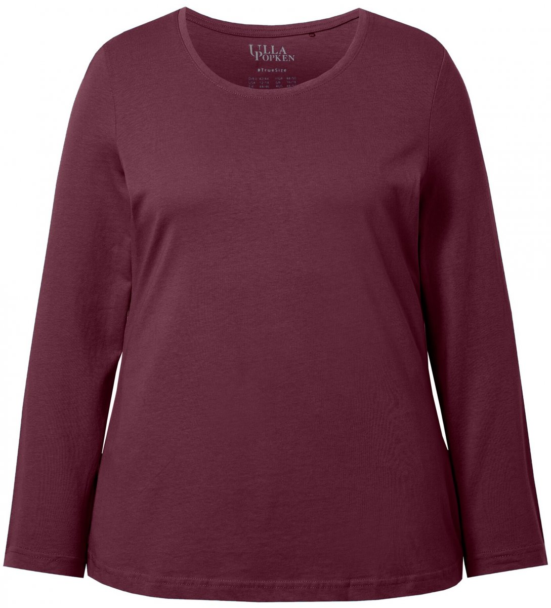 Størrelsesguide - Ulla Popken Basic Round Neck Long Sleeve Slim Fit Cotton Tee Dark Berry