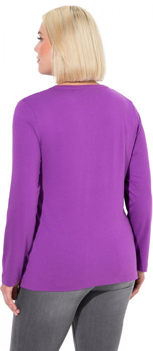 Ulla Popken Basic Round Neck Long Sleeve Slim Fit Cotton Tee Purple