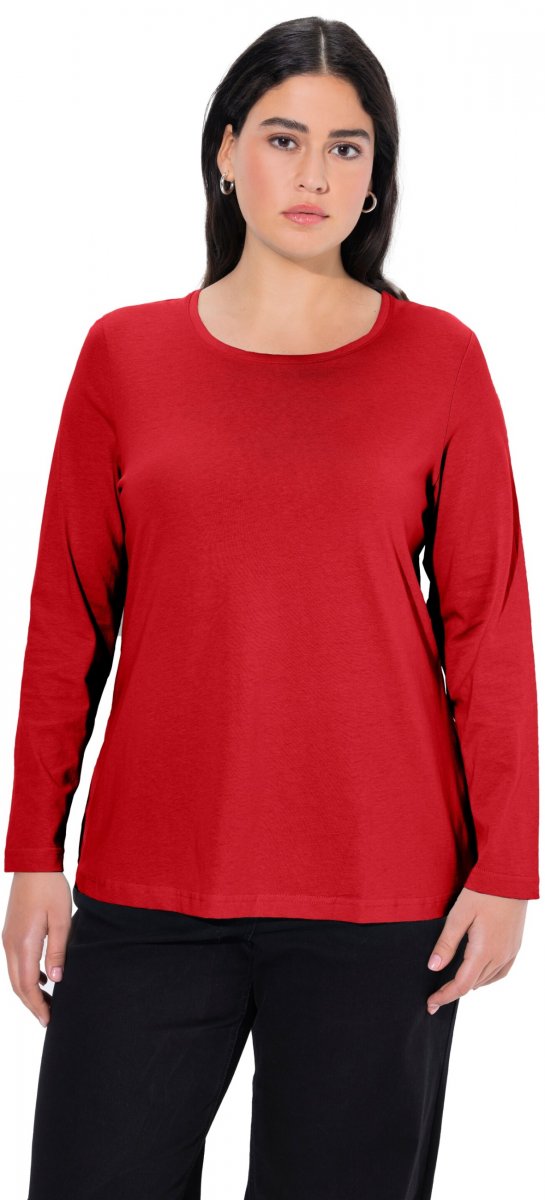 Ulla Popken Basic Round Neck Long Sleeve Slim Fit Cotton Tee Salsa Red