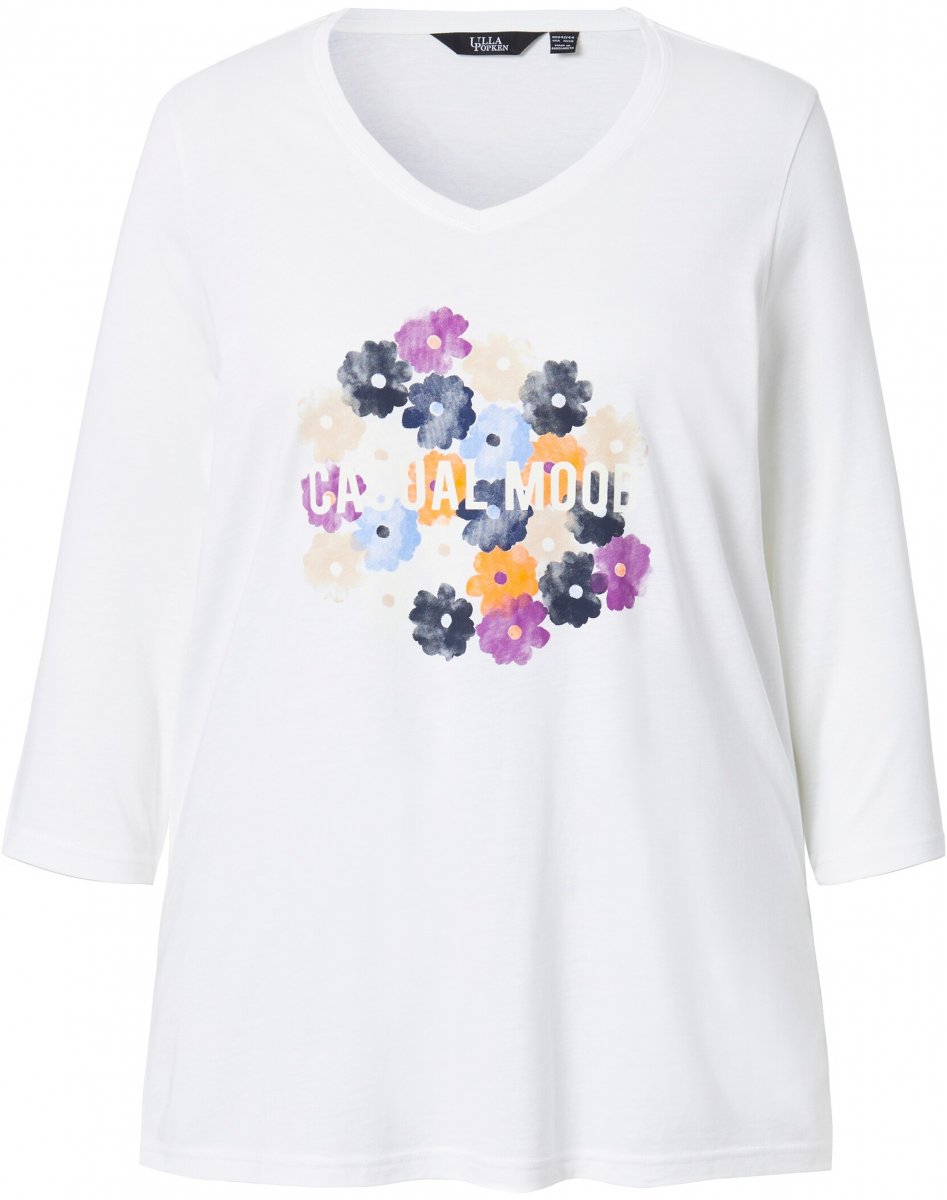 Størrelsesguide - Ulla Popken Casual Mood Floral V-Neck Tee Off-White