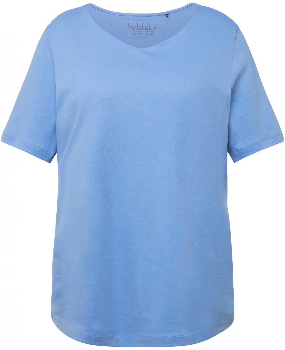 Størrelsesguide - Ulla Popken Double Layer Rounded V-Neck Slim Fit Tee Cloud Blue