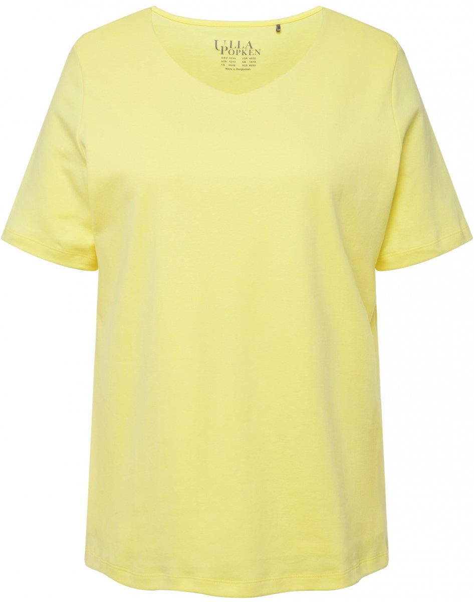 Størrelsesguide - Ulla Popken Double Layer Rounded V-Neck Slim Fit Tee Lemon Yellow