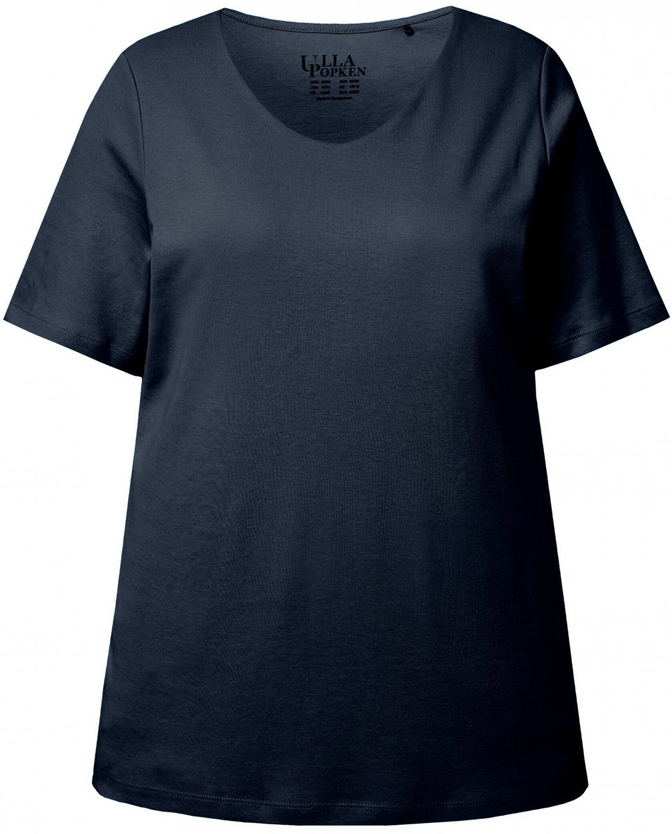 Ulla Popken Double Layer Rounded V-Neck Slim Fit Tee Navy Blue
