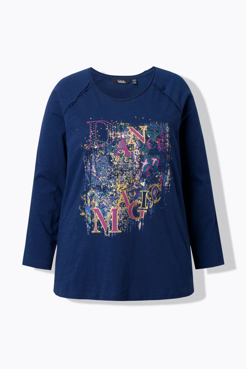 Ulla Popken Inverted Seam Long Sleeve Graphic Tee Ink Blue