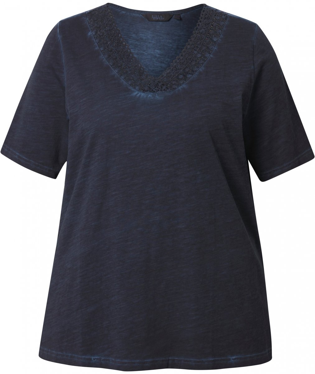 Ulla Popken Lace Trim Short Sleeve Tee Navy Blue