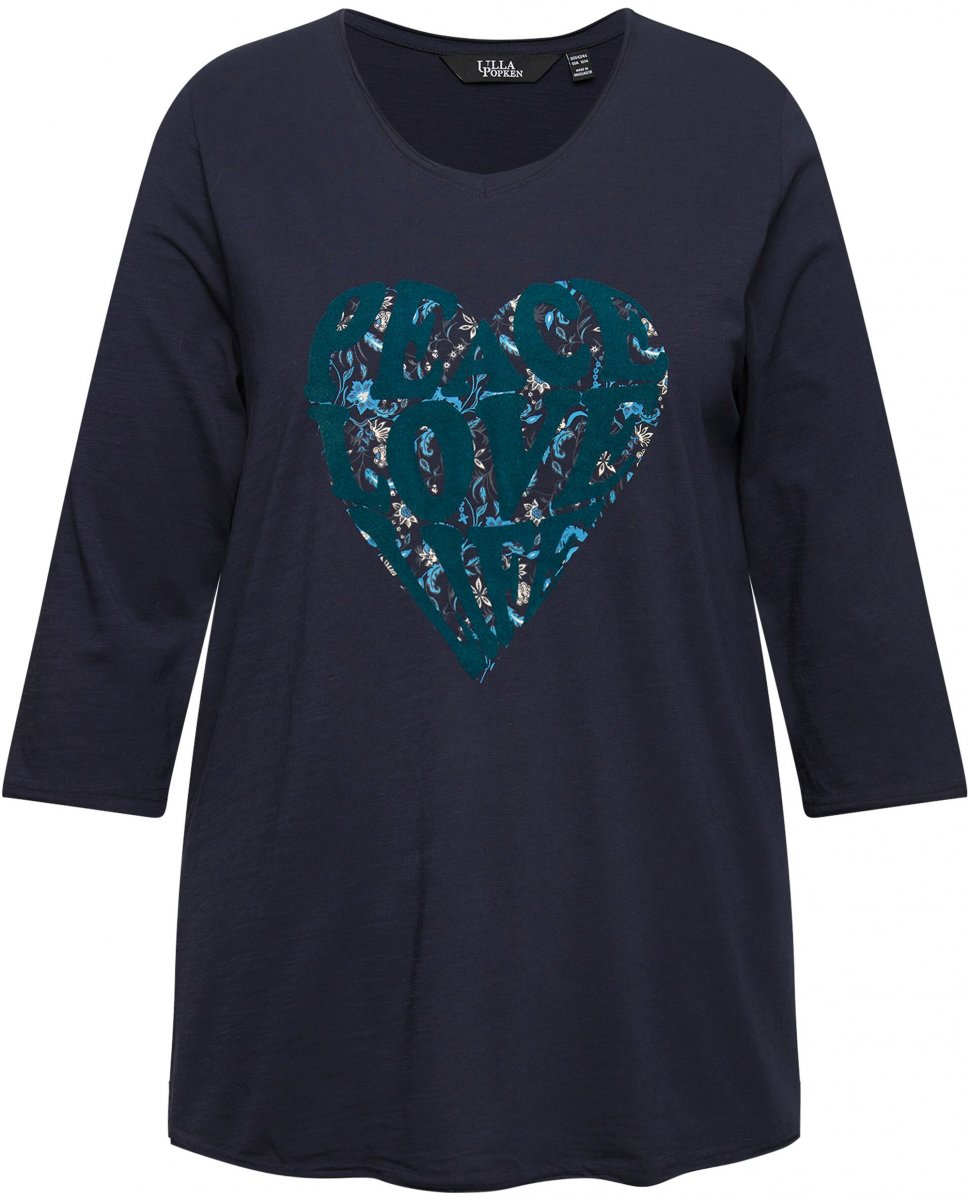 Ulla Popken Peace Love Life 3/4 Sleeve Graphic Tee Navy