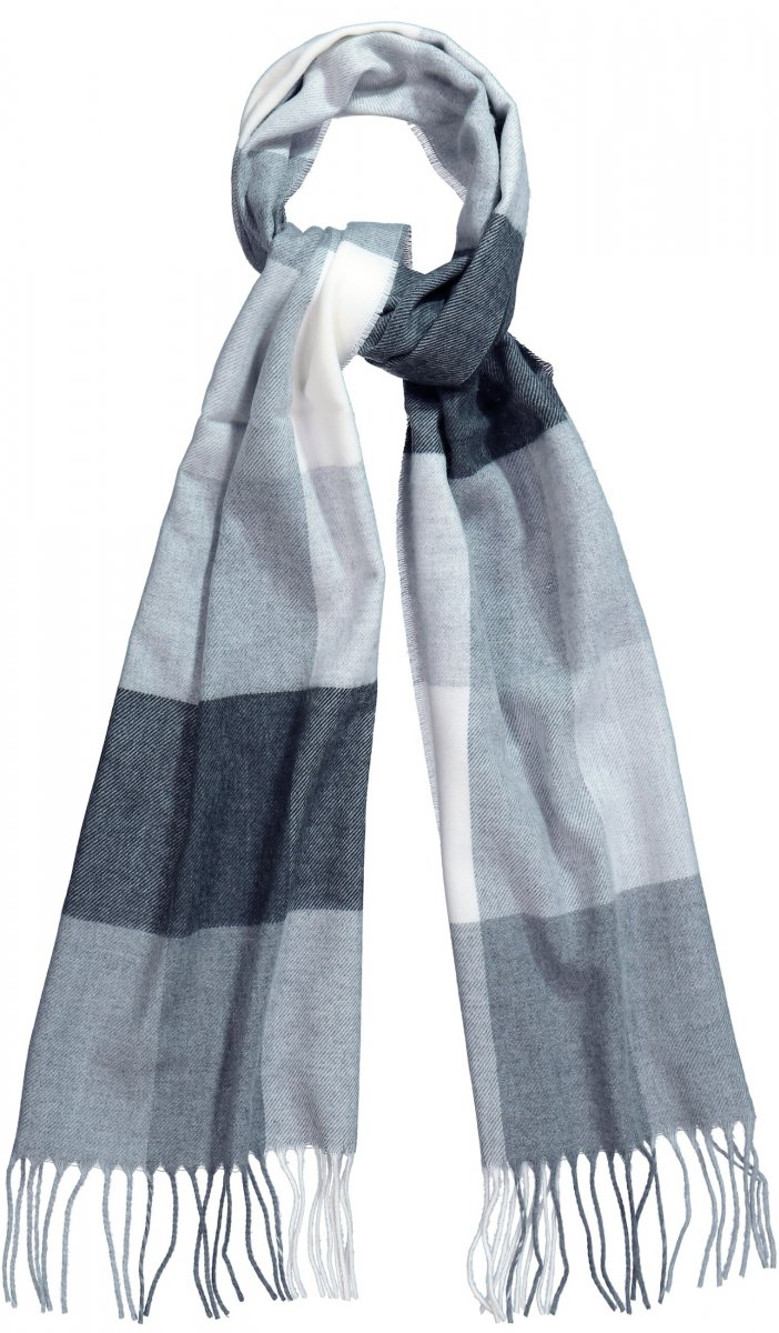 Ulla Popken Checked Fringed Hem Scarf Light Grey Melange