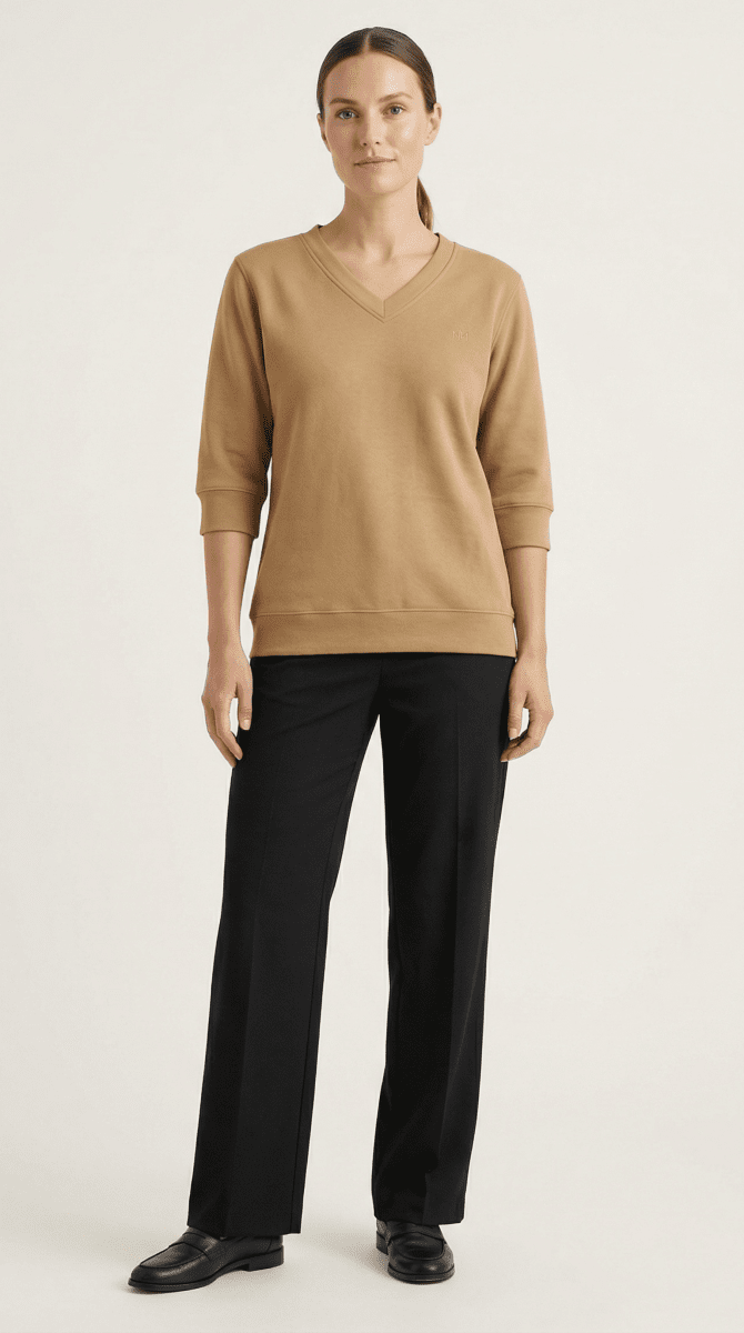 DamesweatshirtTilgjengelig i størrelsene S-XXLFra merket Nora MikkenLaget av 60% bomull og 40% polyesterVanlig passformFargen er beigeKlikk her for å se størrelsesguiden