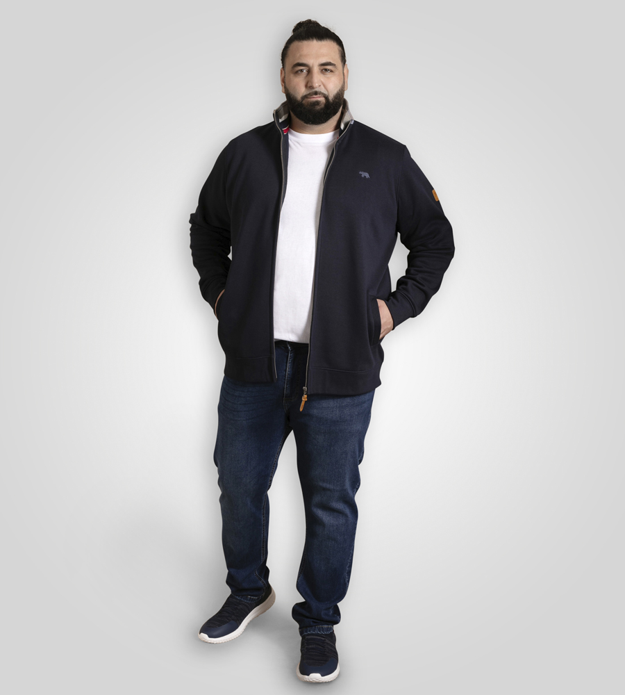 Størrelsesguide - D555 Johnson Zip Through Fleece Sweatshirt with Chest Embroidery Navy