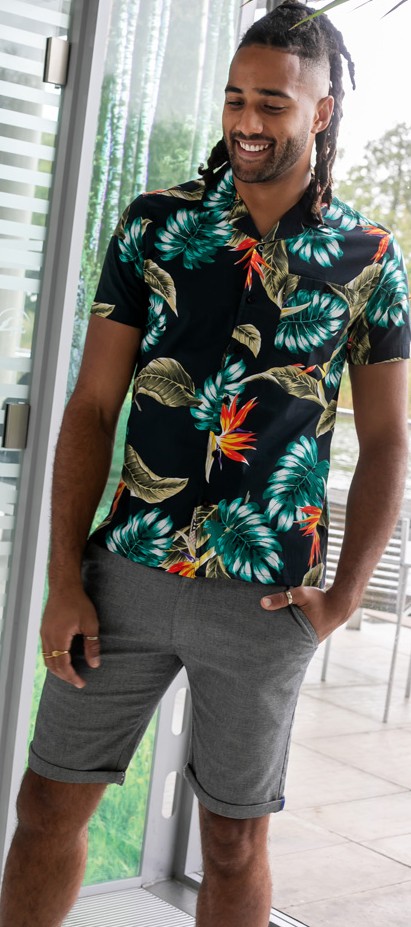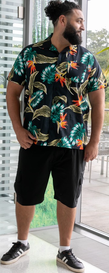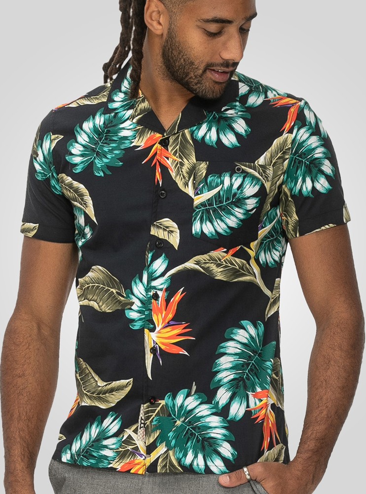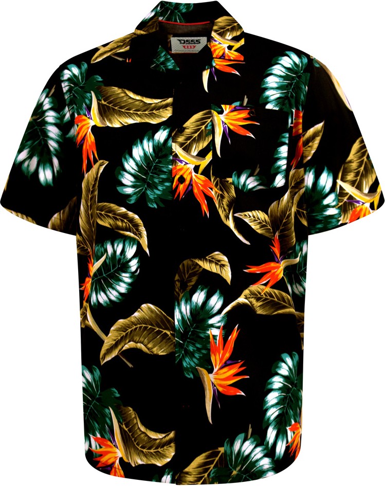 Størrelsesguide - D555 Selby Hawaiian AOP Short Sleeve Revere Collar Shirt Black