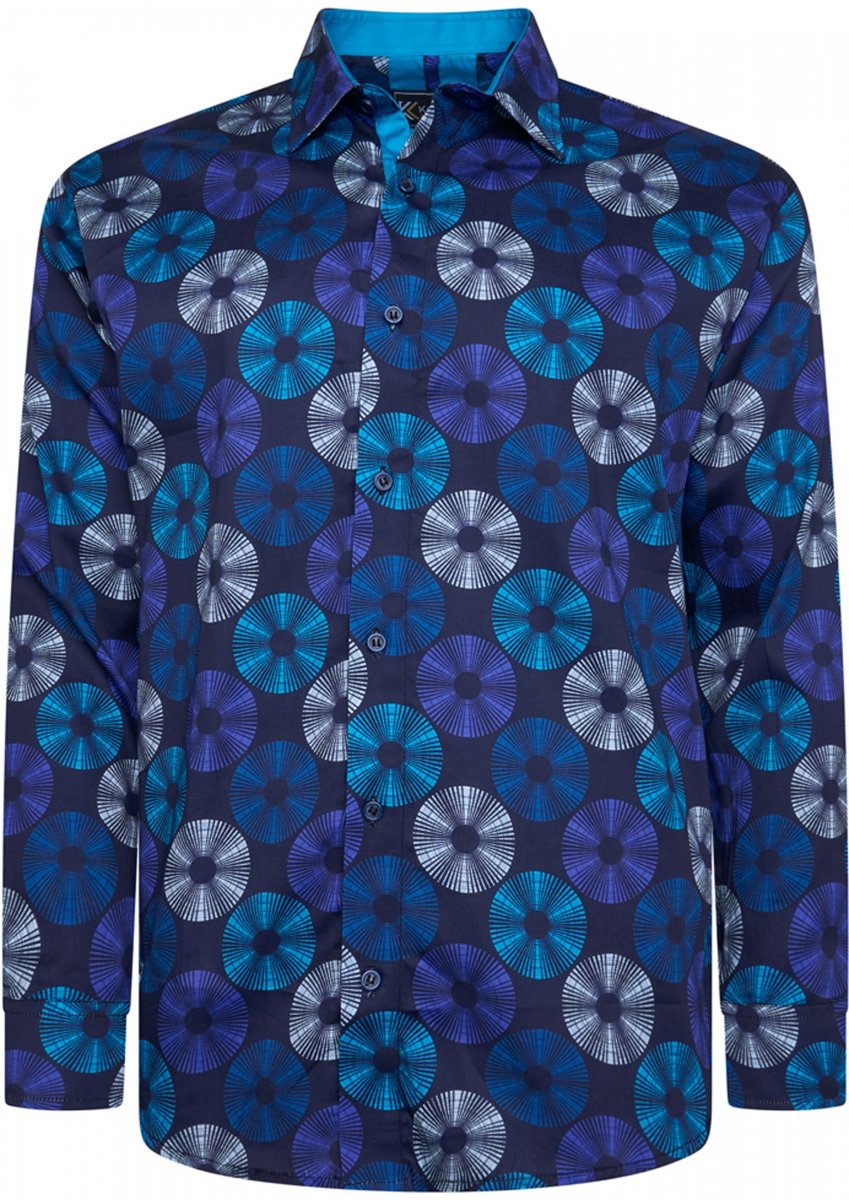 Størrelsesguide - Kam Jeans 6071 Record Print Long Sleeve Shirt Navy