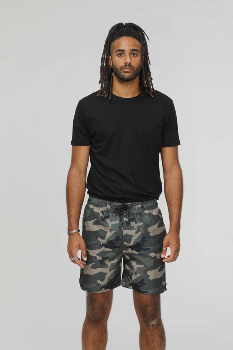 Espionage SW104 Mono Print Cargo Swimshorts Black