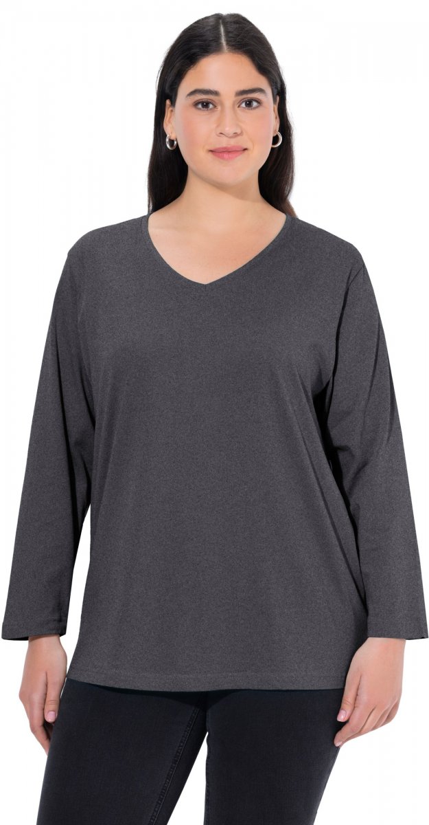 Størrelsesguide - Ulla Popken Back To Basics V-Neck Relaxed Fit Cotton Tee Charcoal Grey Melange
